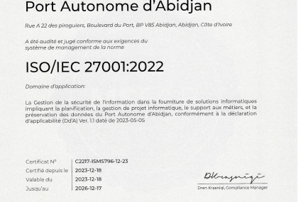 As part of its governance framework and the protection of its information systems, Abidjan Port A