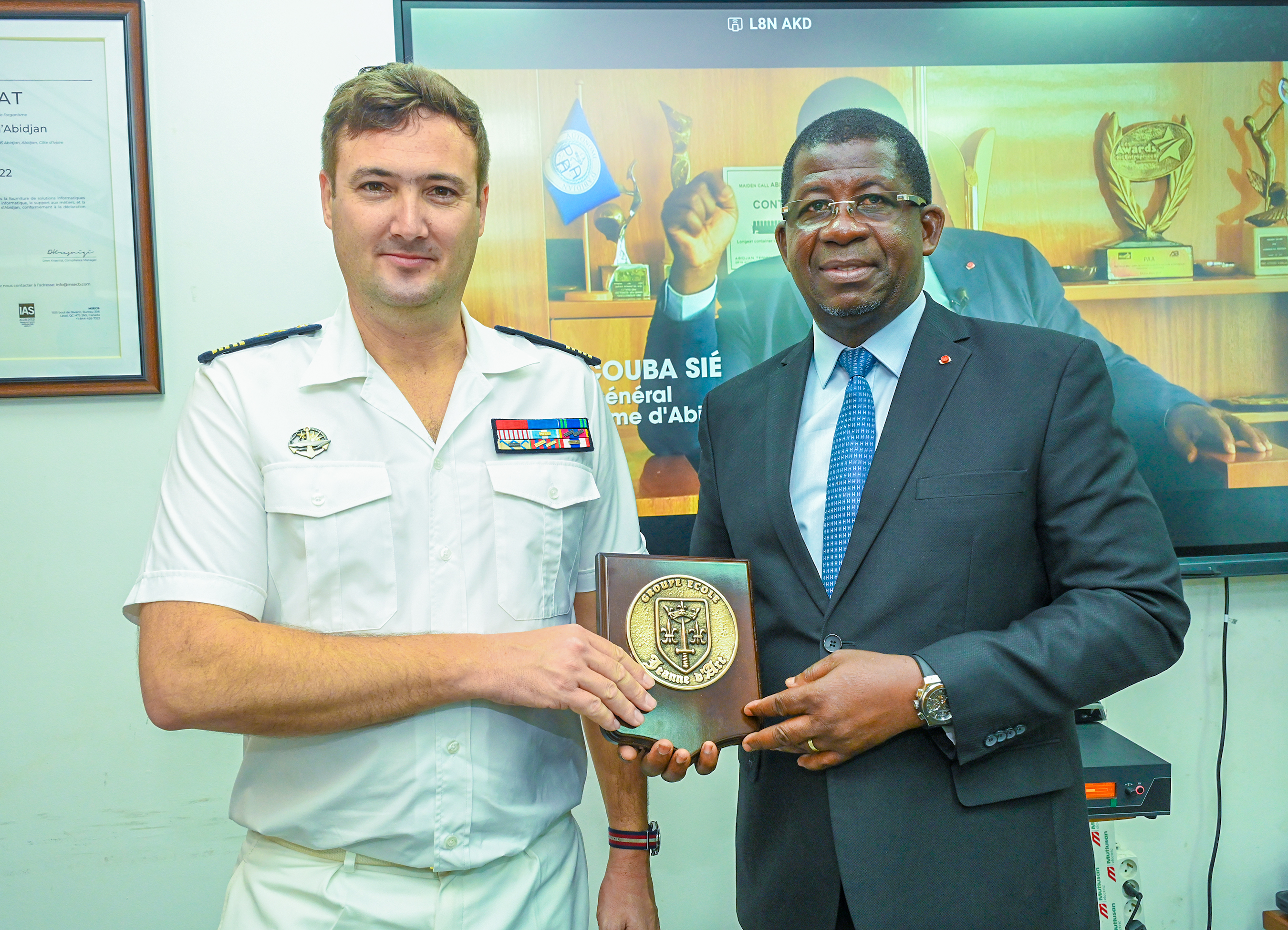 The ship commanders, Captain Arnaud BOLLELI and Commander Xavier BRIGNOLI, accompanied by liaison officers, paid a courtesy visit to Abidjan Port Authority on Monday, March 10, 2025.