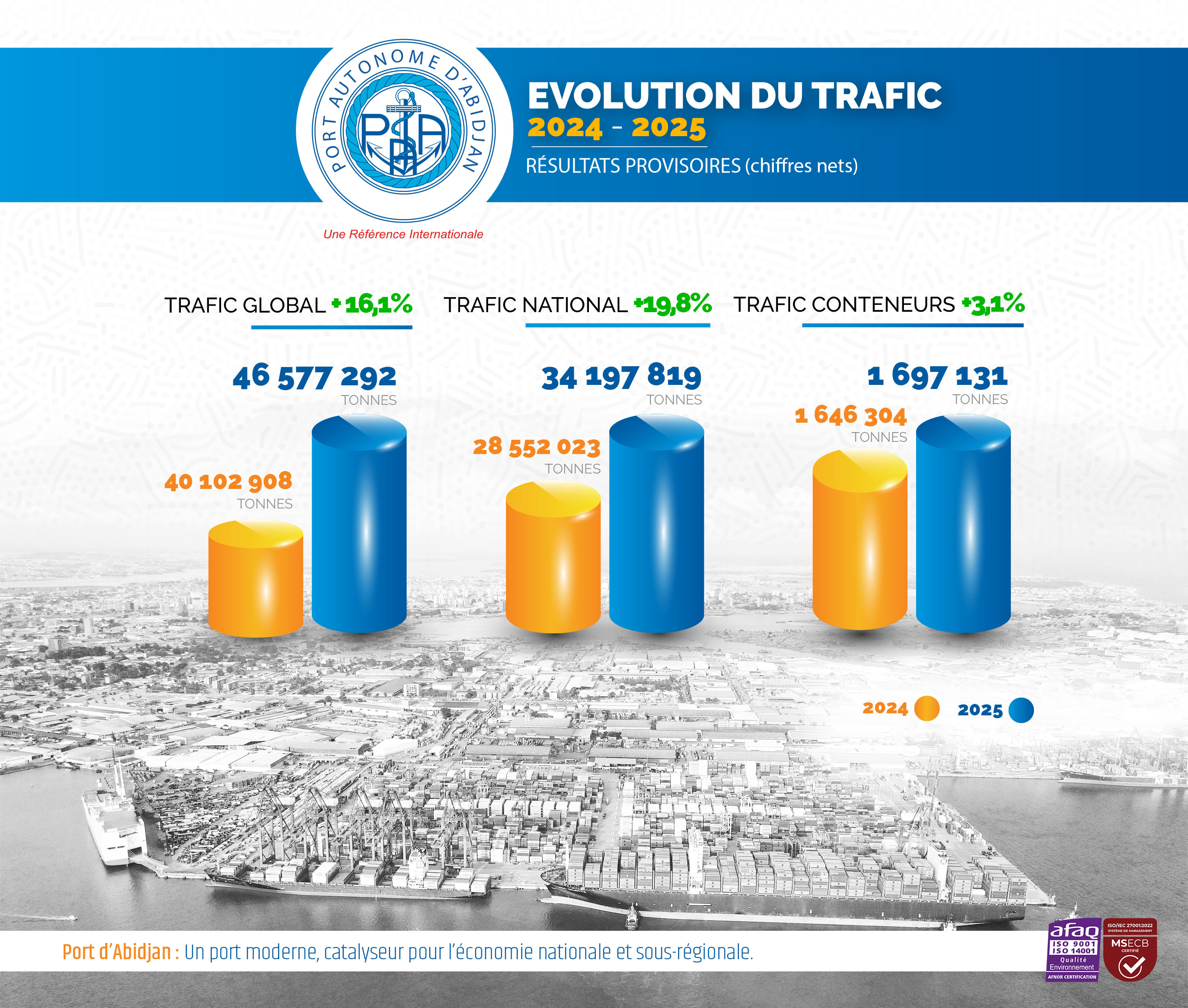 » » Croissance du trafic 2025 : le Port d’Abidjan renforce son poids au niveau national et dans l’hinterland.