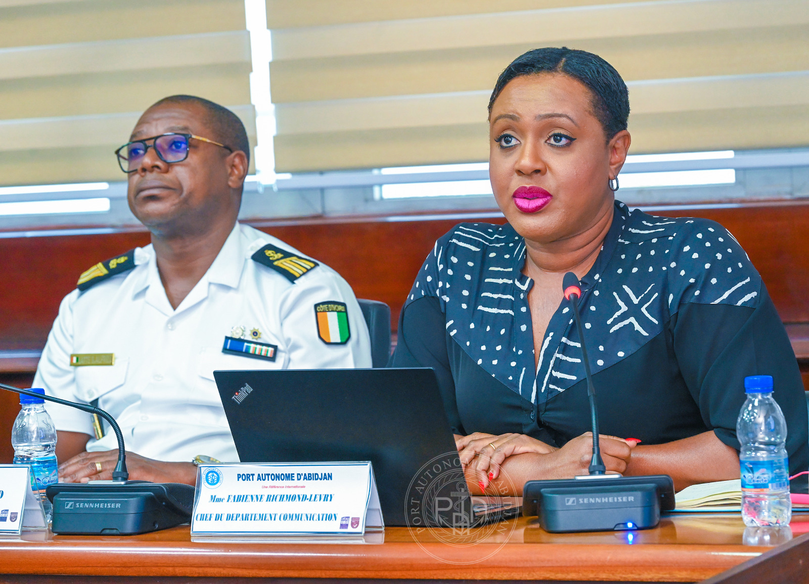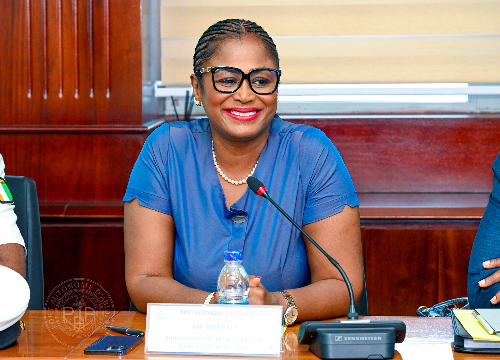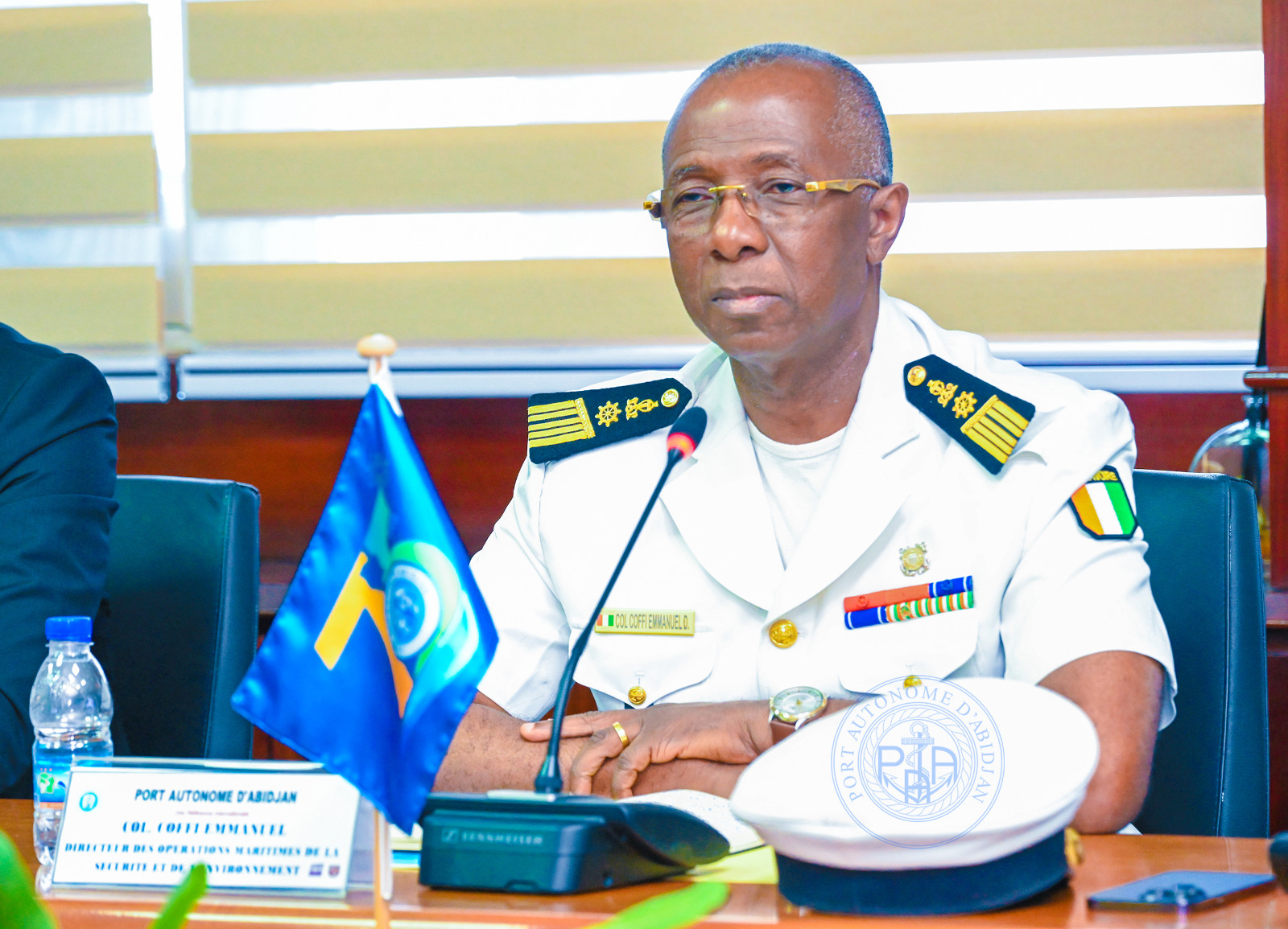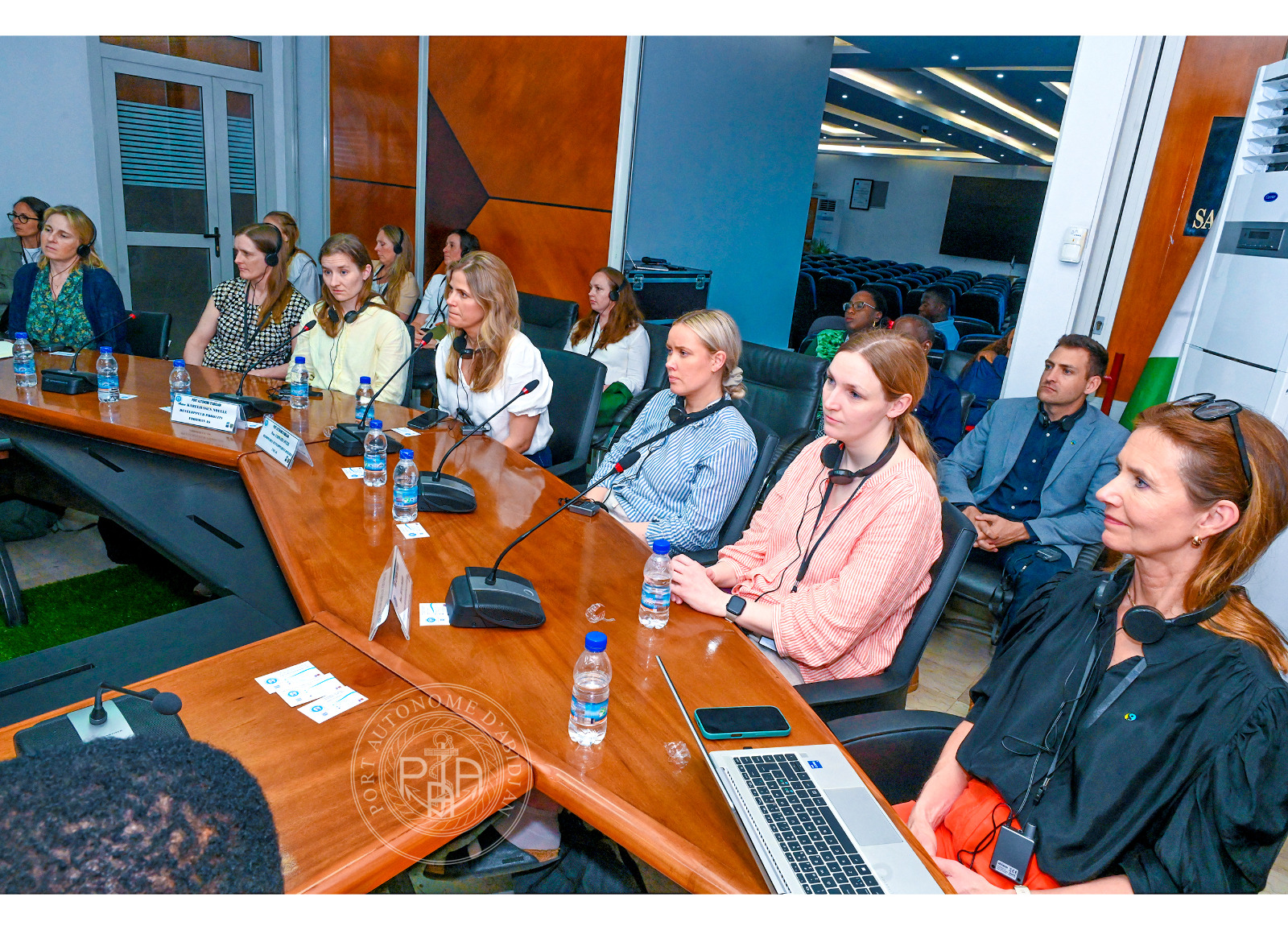 La délégation avec à sa tête, Mme Ingrid SKJOLAS, vice-Ambassadeur du Royaume de Norvège à Accra (Ghana), et conduite par Madame Antoinette BOTTI, Consul honoraire du Royaume de Norvège en Côte d’Ivoire, a été reçue par le Colonel COFFI Yao Emmanuel, Directeur des Opérations Maritimes, de la Sécurité et de l’Environnement (DOMSE), par ailleurs Commandant du port d’Abidjan, en présence de Dr Titi PALÉ Épse KOUMAN, Directrice Commerciale, Marketing et de la Communication (DCMC), de M. Hyacinthe MONI, Directeur de l’Ingénierie et de la Maîtrise d’Ouvrages (DIMO), et de M. Jules KOUADIO, Directeur des Études Économiques, de la Stratégie et de la Planification (DEESP).
