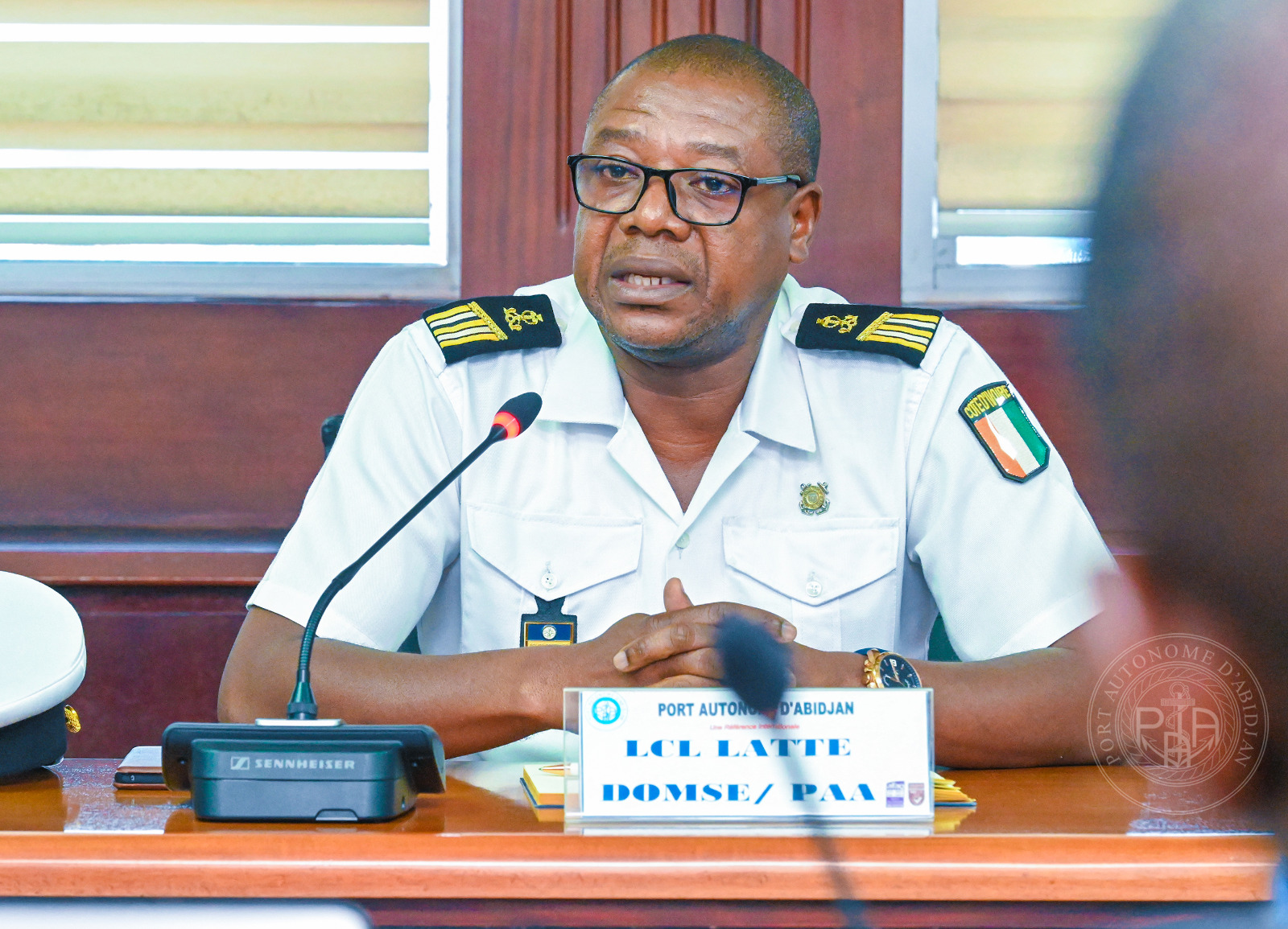 C’est Dr Titi PALE, Directrice commerciale, marketing et de la communication, qui a accueilli les hôtes au nom du Directeur Général du PAA, aux côtés du Lieutenant-Colonel LATH, représentant le Commandant du port.
