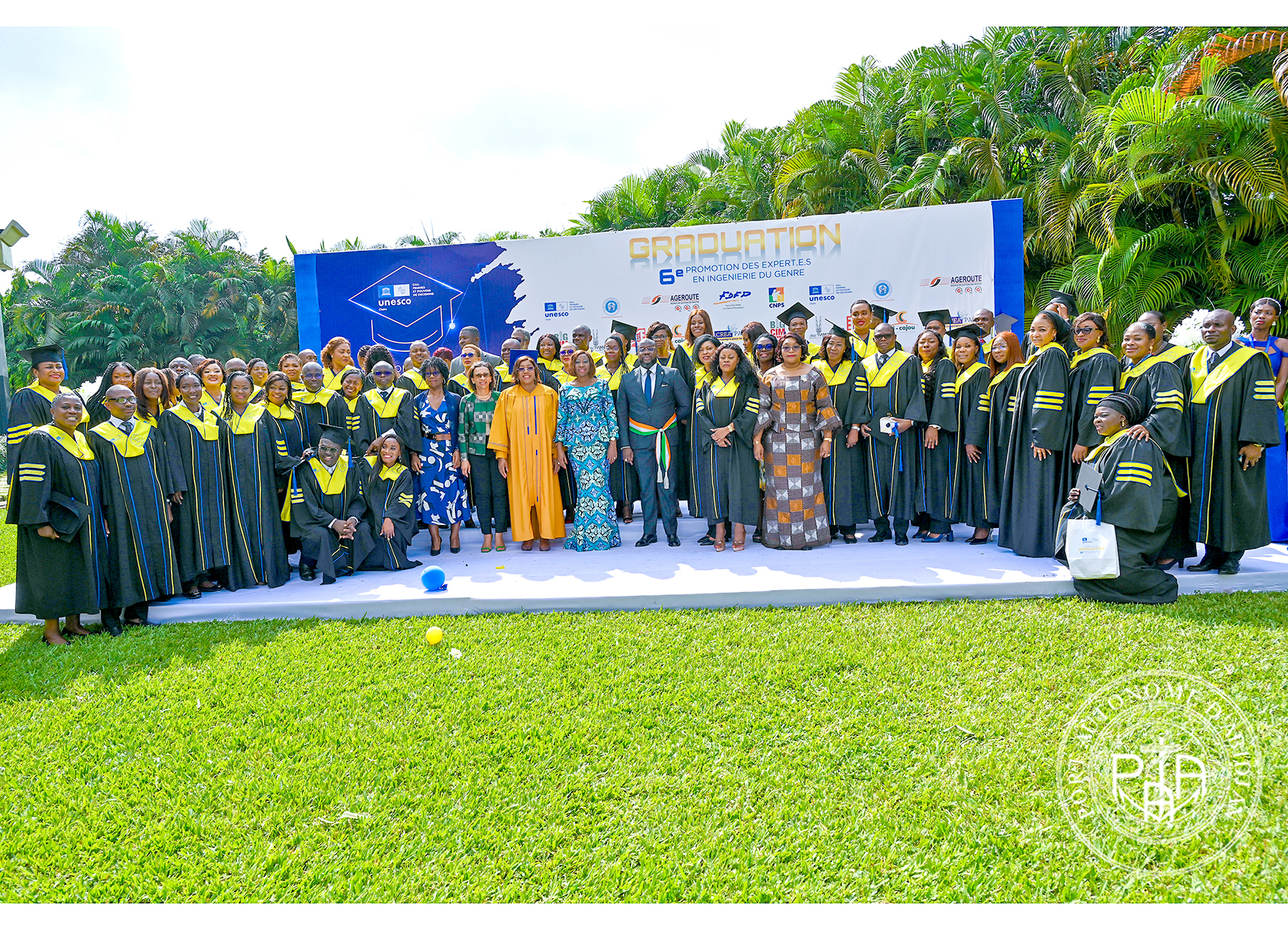 The graduation ceremony took place on Saturday 09 December 2023 at espace Latrille Events in Cocody 2 Plateaux, in the presence of her Excellency KANDIA CAMARA, president of the Ivorian Senate ,Godmother of the 6th class ; of the Minister Mrs Euphrasie KOUASSI YAO ,Holder of the UNESCO Chair « Water ,Women and Decision Making power» and several other political,diplomatic officials and officials from the private, public and parapublic sector.