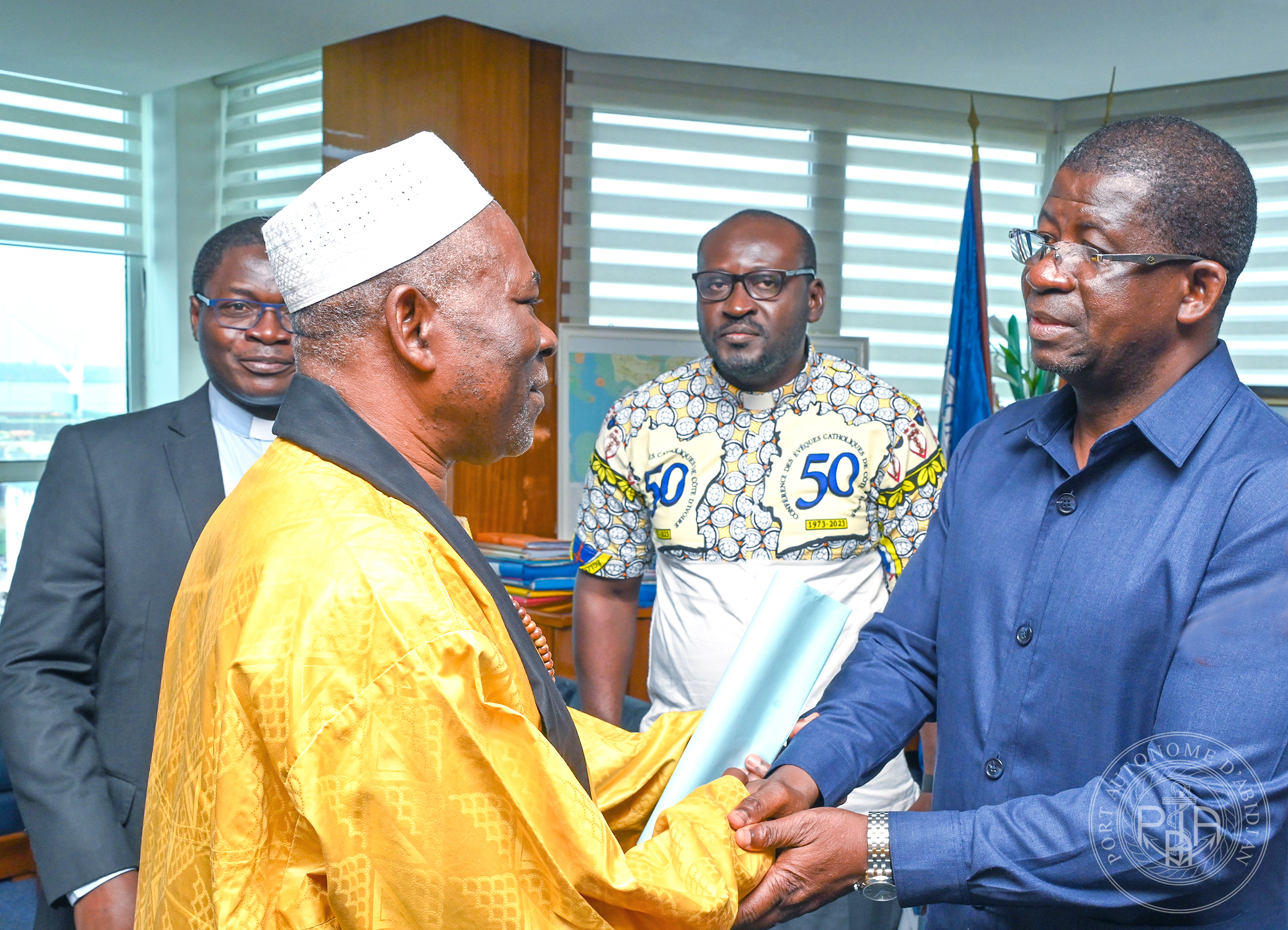 Led by Imam El Hadj Mohamed-Lamine HAIDARA, Chief Imam of the OULFAT Mosque in the port zone and Chief Chaplain of the Maritime and Port Sector of Côte d’Ivoire, the delegation also included the Very Reverend Pastor Pierre AKA AMON, Pastor of the Methodist Church of the Fraternity of Côte d’Ivoire/Port Zone and Chaplain of Ports and Industries, Father Emmanuel AKA AMON, Chaplain of the Apostleship of the Sea, and Father Alain Paul N’GUESSO, the new Parish Priest of Saint Anthony of Padua Church at Abidjan Port Authority , in office for the past four months.