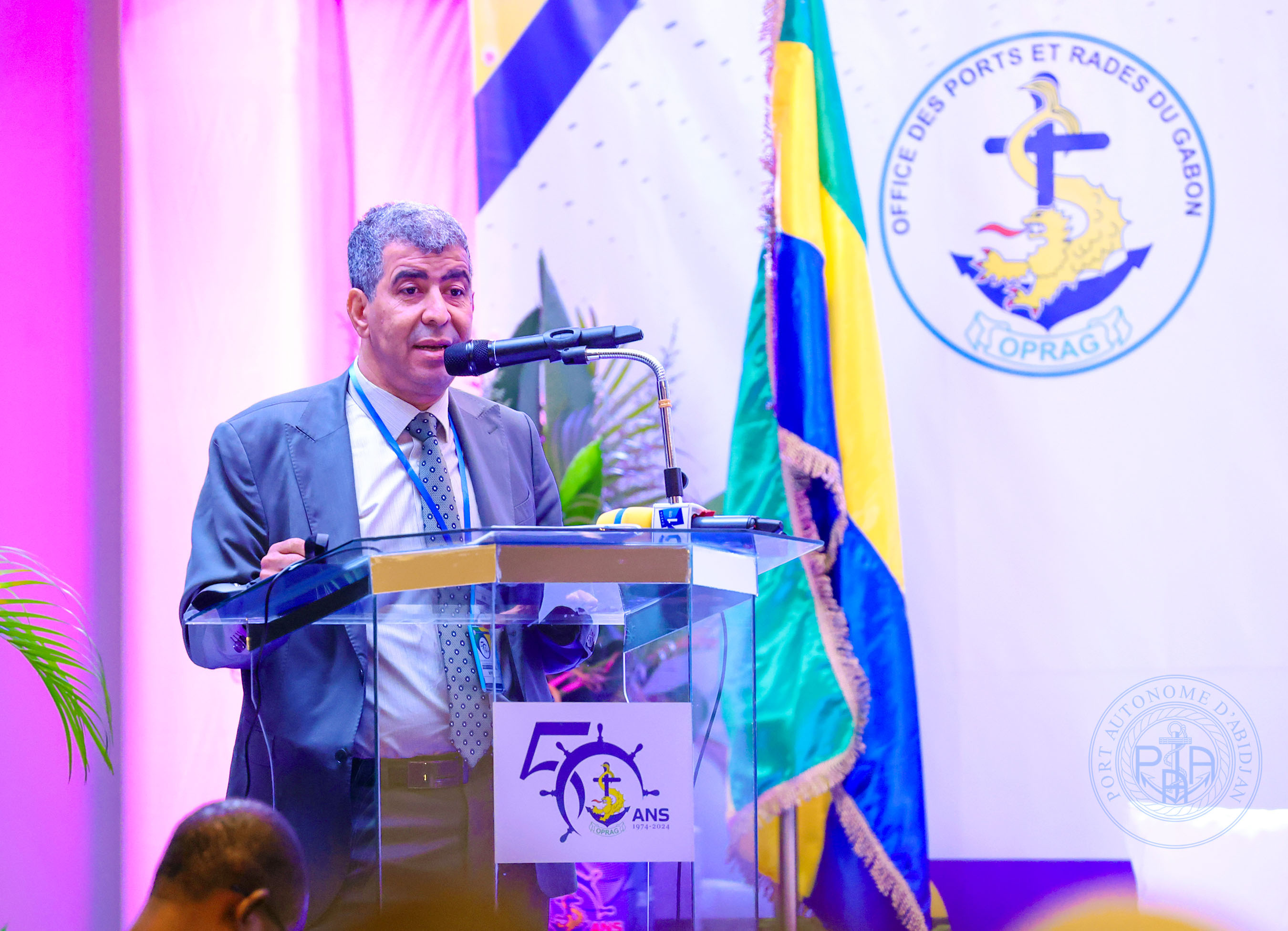 The joint conference of the Pan-African Association for Port Cooperation (APCP) and the International Association of Ports and Harbours (IAPH) was held on 11 and 12 April 2024 at the Radisson Blu Hotel in Libreville, in conjunction with the fiftieth anniversary celebrations of the Office des Ports et Rades du Gabon (OPRAG). The opening ceremony of the meeting took place on 11 April 2024, in the presence of senior Gabonese authorities, in particular the Prime Minister of the transition, Mr. Raymond NDONG SIMA.
