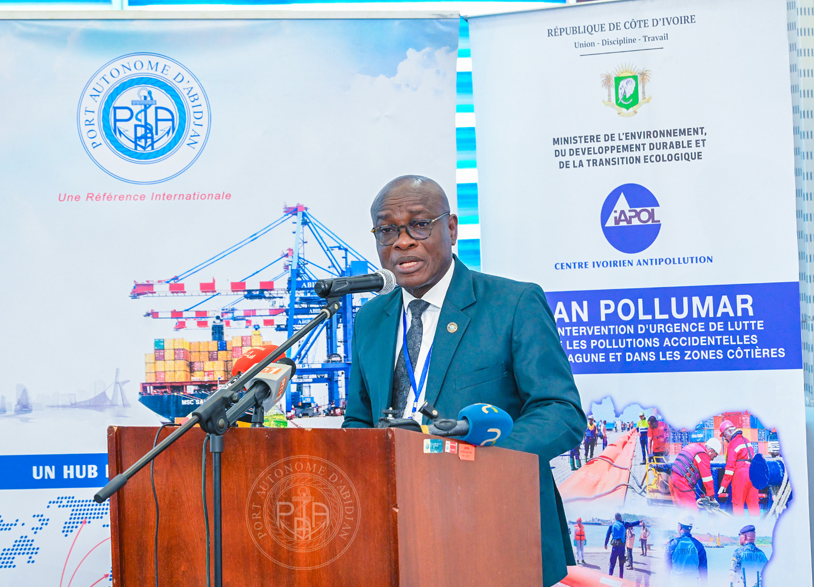 Cette phase finale s’est déroulée en présence du Ministre de l’Environnement, du Développement Durable et de la Transition Écologique, M. Jacques Assahoré KONAN, accompagné du Commandant du Port, le Colonel COFFI Yao Emmanuel, représentant le Directeur Général du Port d’Abidjan. Le ministre a déclenché symboliquement le Plan Pollumar, marquant ainsi le point de départ de l’intervention coordonnée des équipes techniques.