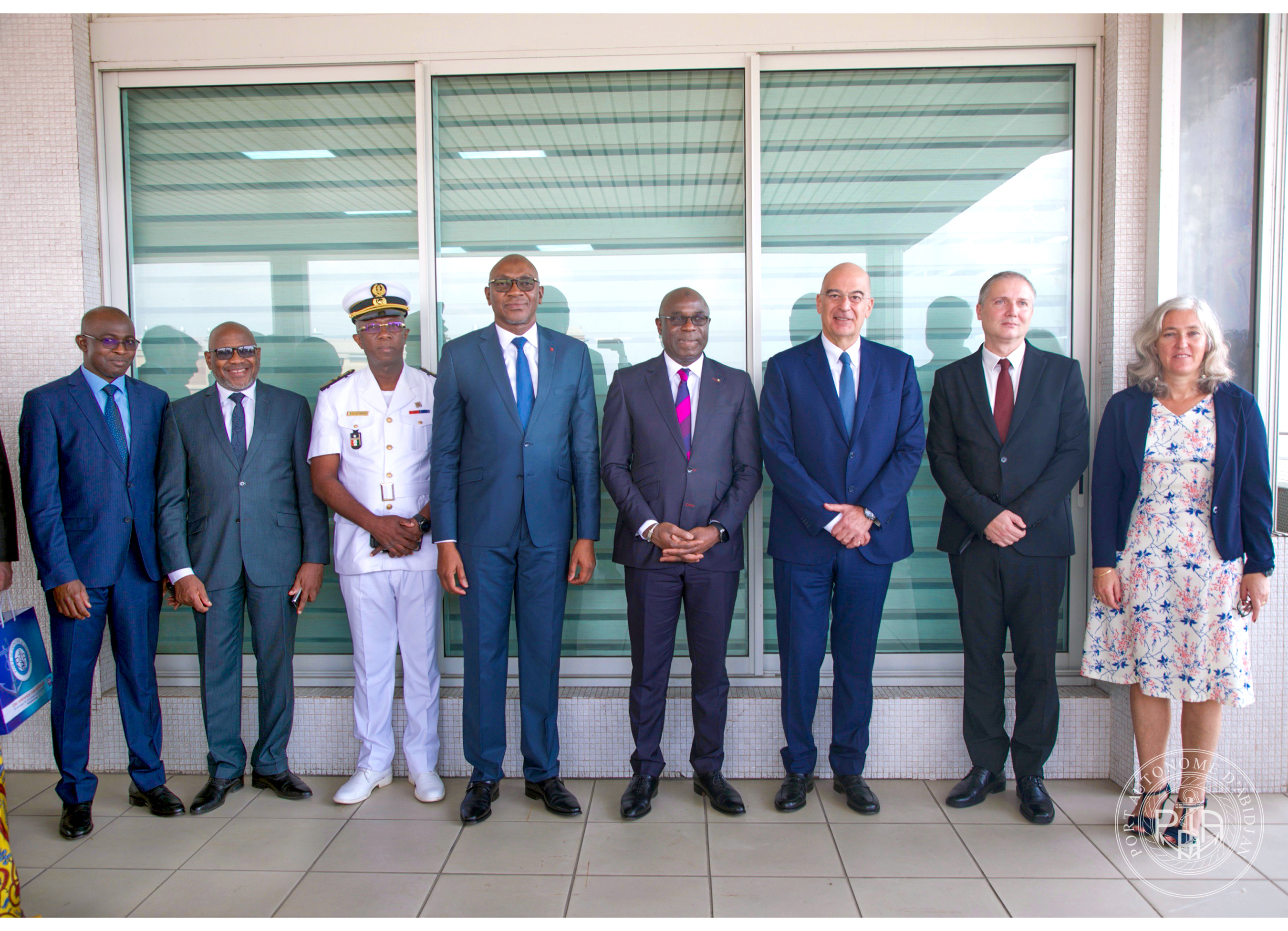 Accompagnée par l’Ambassadeur de la Grèce au Sénégal, envoyé spécial pour le Sahel (englobant la Côte d’Ivoire), SEM. Efthymios-Georges COSTOPOULOS, la délégation a été reçue par le Commandant du Port, le Colonel COFFI YAO Emmanuel, représentant le Directeur Général, M. Hien Yacouba SIÉ, entouré de quelques directeurs sectoriels du PAA.