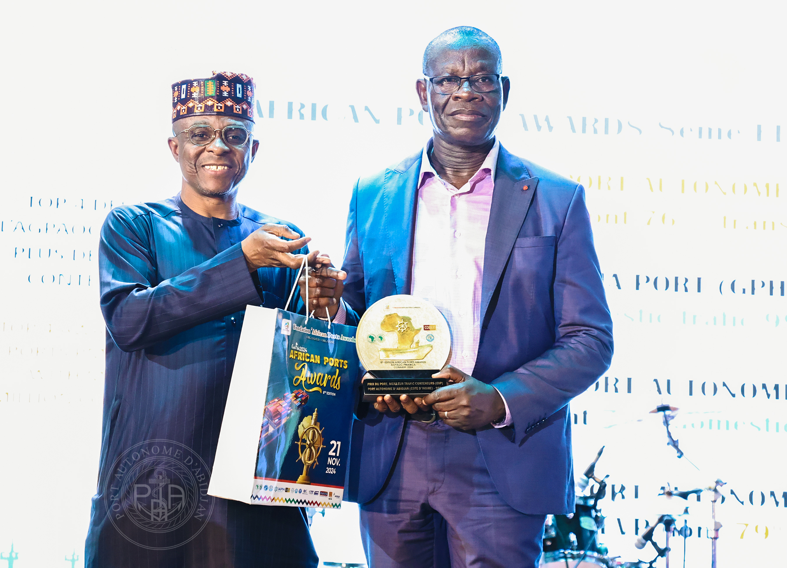 Le Port Autonome d’Abidjan (PAA) a remporté trois distinctions lors de la 8èmeédition des Awards des ports africains qui a eu lieu le jeudi 21 octobre 2024 à l’hôtel Palm Camayenne, au cours du dîner de gala marquant la clôture du 44èmeConseil de l’Association de Gestion des Ports de l’Afrique de l’Ouest et du Centre (AGPAOC), qui s’est tenu du 18 au 21 novembre 2024, à Conakry en Guinée .