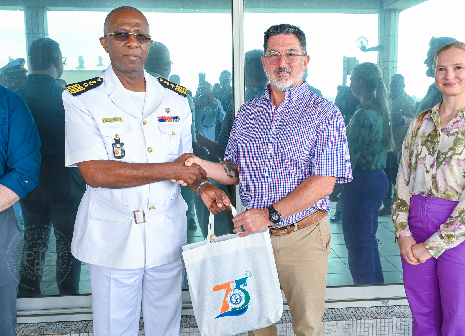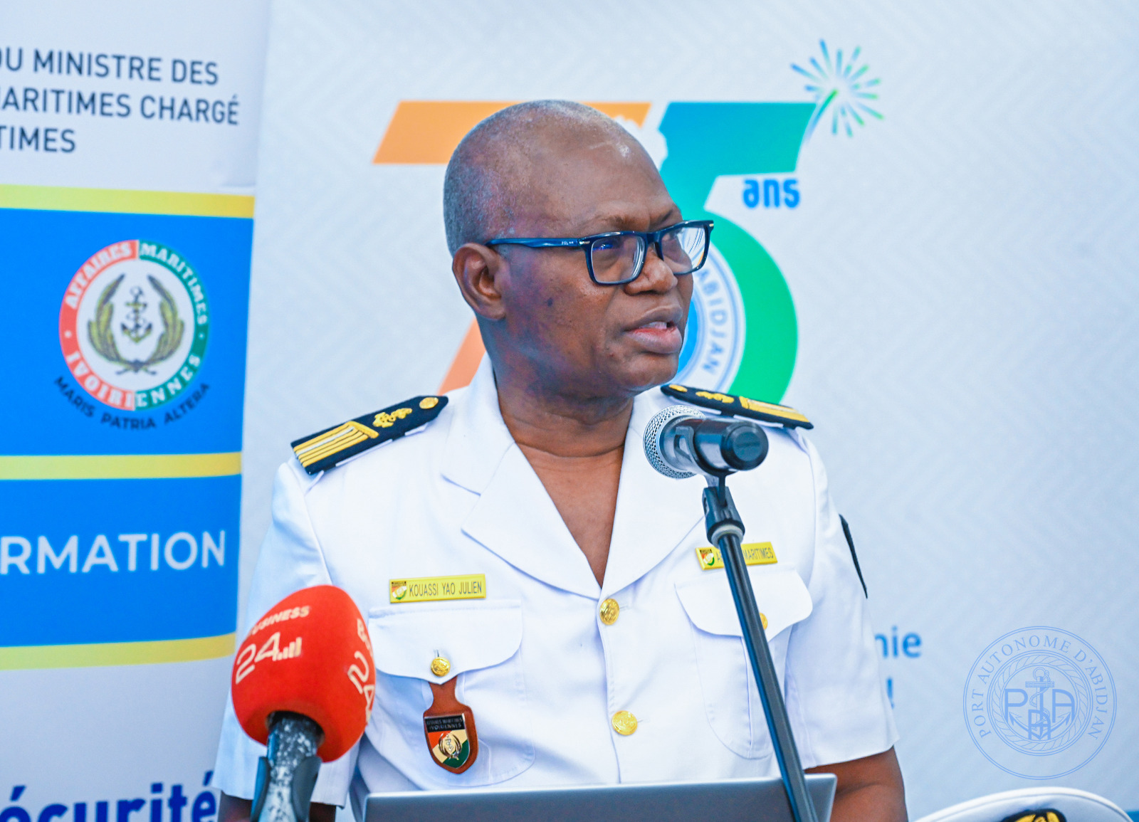 La cérémonie a été présidée par le Directeur de Cabinet du ministre délégué auprès du ministre des Transports et des Affaires Maritimes, chargé des Affaires Maritimes, M. Benjamin SORO, représentant son Ministre, Dr Célestin DOH. Elle s’est tenue en présence de plusieurs autorités, notamment le Directeur Général des Affaires Maritimes, le Colonel-major Julien Yao KOUASSI, le Directeur des Opérations Maritimes, de la Sécurité et de l’Environnement (DOMSE), le Colonel COFFI Yao Emmanuel, ainsi que le Directeur Commercial, Marketing et de la Communication, Dr Titi PALÉ épouse KOUMAN.
