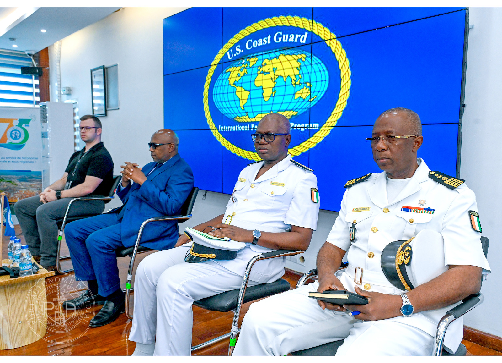 Ce séminaire, animé par les garde-côtes américains dans le cadre du Programme International de Sûreté Portuaire du Gouvernement des États-Unis, est conduit par le lieutenant Matthew NAYLOR. Il vise à renforcer les capacités opérationnelles des acteurs du secteur maritime et portuaire ivoirien, notamment ceux des ports d’Abidjan et de San Pedro, face aux enjeux sécuritaires.