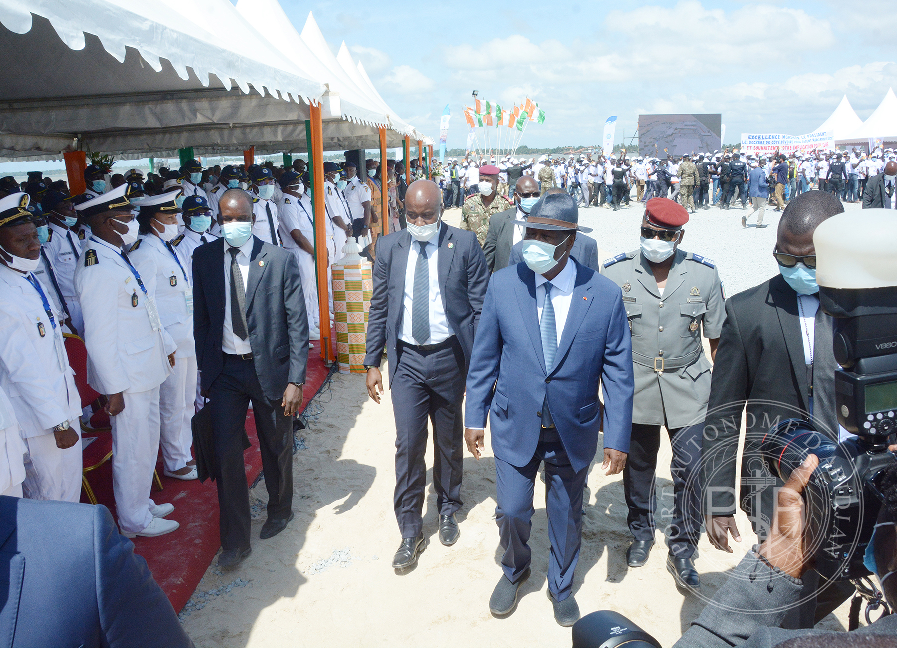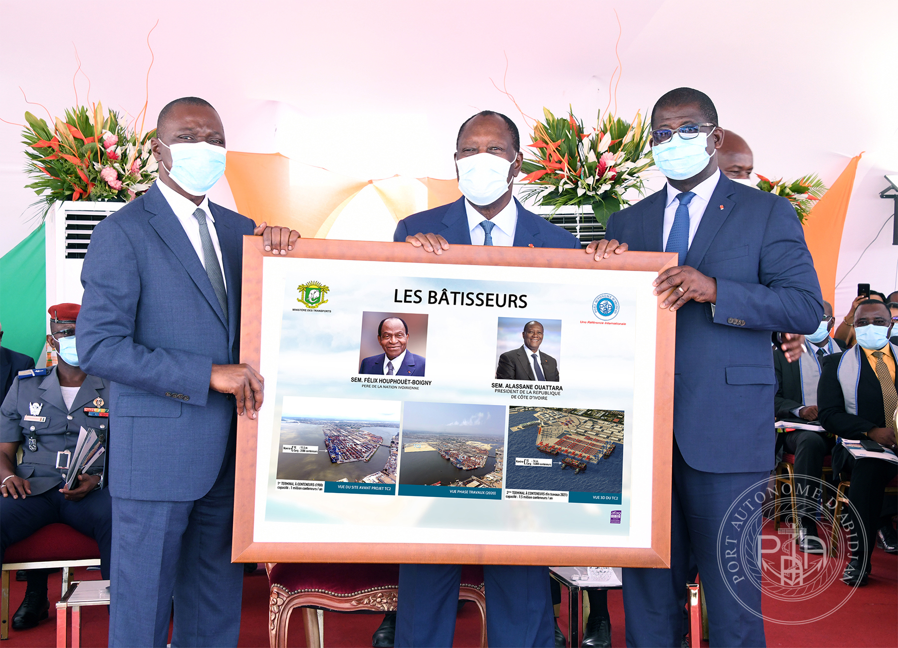 Le Président de la République, SEM Alassane OUATTARA, accompagné du Premier Ministre, Hamed Bakayoko, de plusieurs membres du gouvernement, a procédé le 05 octobre 2020, au Port d’Abidjan, à la pose la première pierre des travaux de réalisation des superstructures du deuxième terminal à conteneurs du port d’Abidjan, en présence, des représentants des partenaires techniques et financiers du projet.