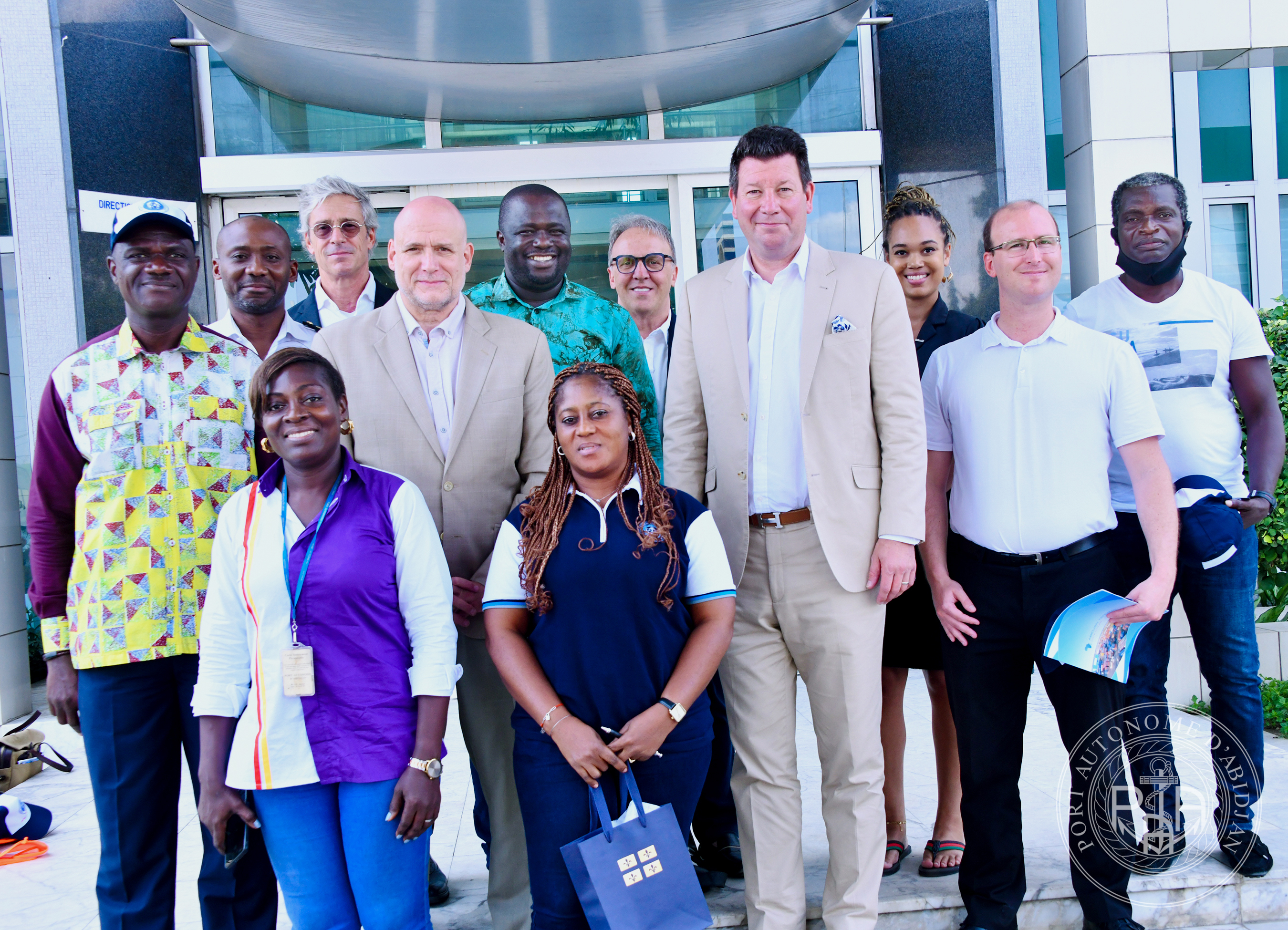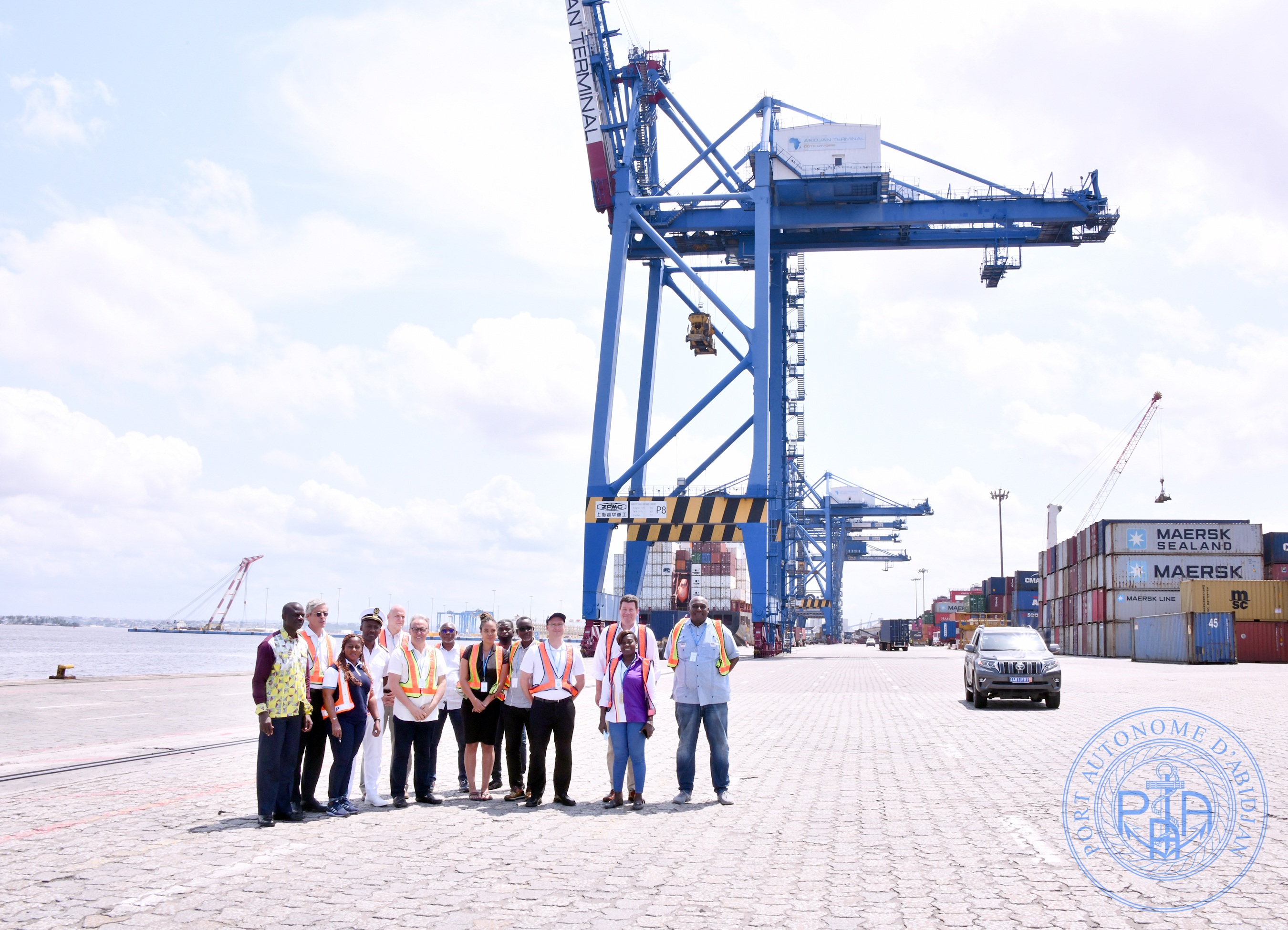 Avant la visite des installations, la délégation a été reçue à la Direction Générale du Port Autonome d’Abidjan par le Commandant AKAHI Franck André, Directeur adjoint à la Direction des Opérations Maritimes, de la Sécurité et de l’Environnement (DOMSE) et M. MONY Hyacinthe, Directeur adjoint à la Direction de l’Ingénierie et de la Maitrise d’Ouvrages (DIMO) , tous deux représentant l’ Autorité Portuaire d’ Abidjan.